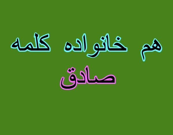 هم خانواده کلمه صادق شامل کلماتی مثل: مصدق ، صداقت، تصدیق، صدق، مصادیق، صدقه، صدیق و تصدیق نامه هستند. یاد گرفتن و حفظ کردن هم خانواده، مترادف و متضاد یک کلمه راهی آسان برای تقویت زبان فارسی است و باعث بهتر شدن مهارت های نوشتاری شما می شود.
