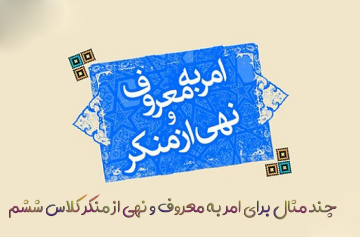 در این بخش از تاپ ناپ ، چند مثال مختلف و مهم در مورد امر به معروف و نهی از منکر ، ویژه کلاس ششم گردآوری شد که شامل اطلاعات خوب و آموزنده ای بودند و امیدواریم مورد رضایت قرار گرفته باشد.