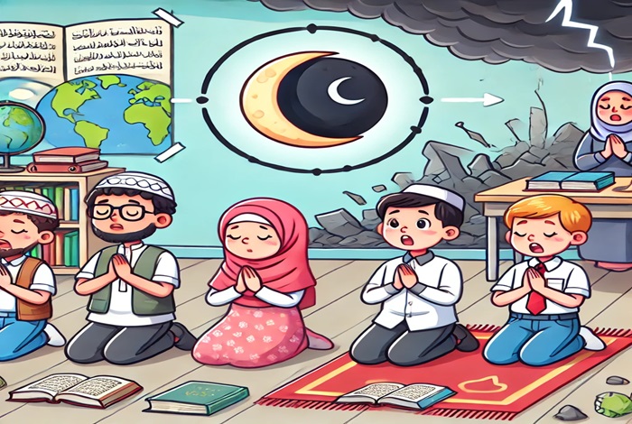 وقتی اتفاقهایی مانند زلزله یا گرفتگی خورشید یا ماه رخ میدهند، مسلمانان نماز آیات میخوانند تا: