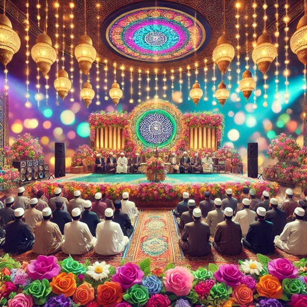 چه زیباست لحظه ای که نام و یاد اهل بیت (ع) در این مجلس جاری می شود. اکنون وقت آن است که با مولودی خوانی ، شادی دل های خود را دوچندان کنیم.