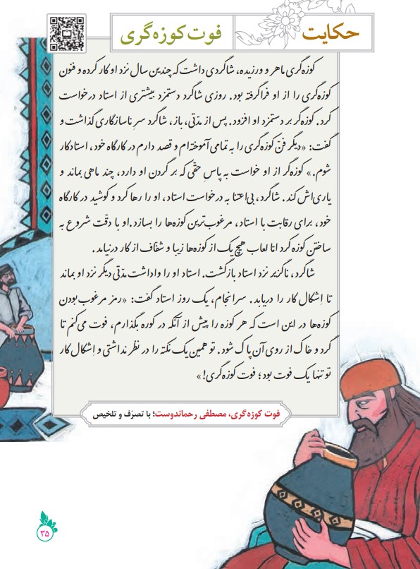 مفهوم حکایت فوت کوزه گری صفحه 35 فارسی هشتم