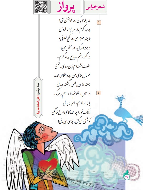 معنی شعر خوانی پرواز فارسی نهم + آرایه های ادبی ، معنی کلمات و خلاصه